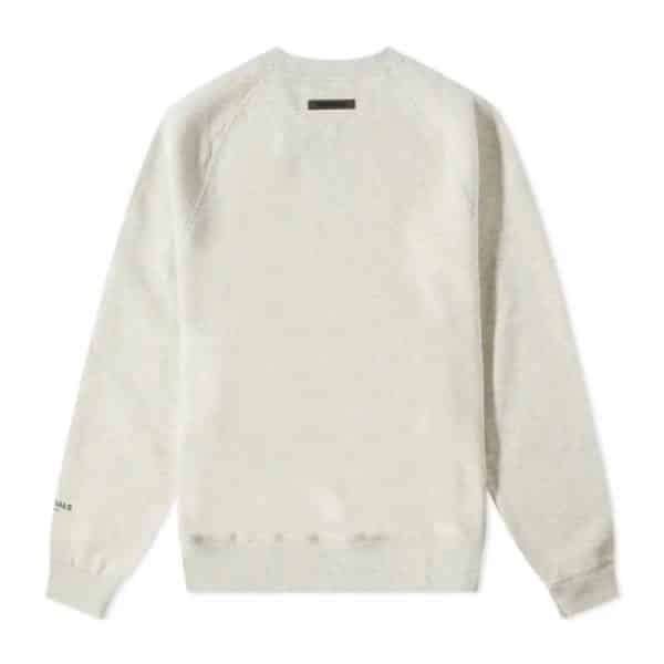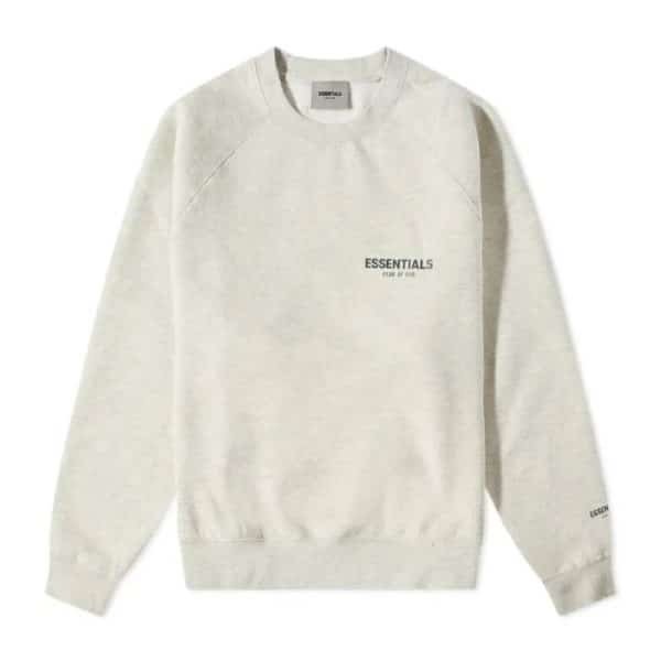 Essentials unisex off-white sweatshirt with minimalist logo design.